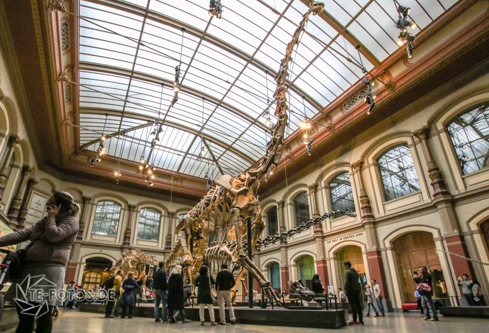 Wir hatten Besuch aus der Heimat und sind gemeinsam erstmals im Naturkundemuseum Berlin gewesen. Im Eingangsbereich wird man direkt von einem überwältigendem riesigen Dinosaurier Skelett empfangen. Der Brachiosaurus brancai ist mit einer Höhe von 13,27 m das größte montierte Dinosaurierskelett der Welt, womit es auch ein Eintrag im Guinness Buch der Rekorde erhalten hat. Der Saurier lebte vor 150 Millionen Jahren und ernährte sich von Pflanzen.
